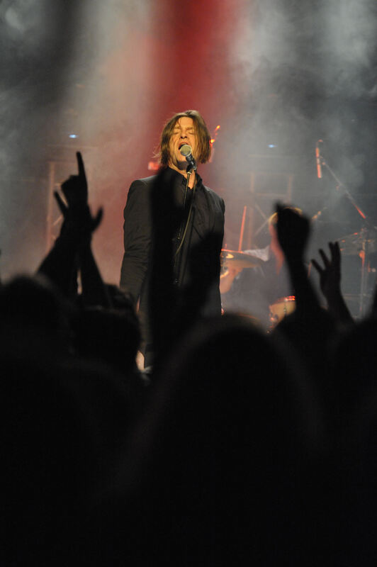 Dunkler Anzug, wallende Haarsträhnen, Theaternebel: Phillip Boa, hier bei einem früheren Auftritt, hatte auch im franz.K jede Menge Sinn für Pathos. FOTO: BREDENFOERDER
