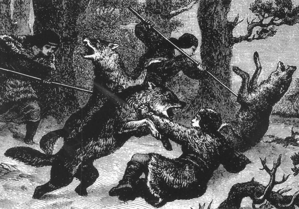Rulaman, Ara und Obu auf der winterlichen Alb im Kampf mit Wölfen. FOTO: GEA-ARCHIV/RAINER-WUNDERLICH-VERLAG