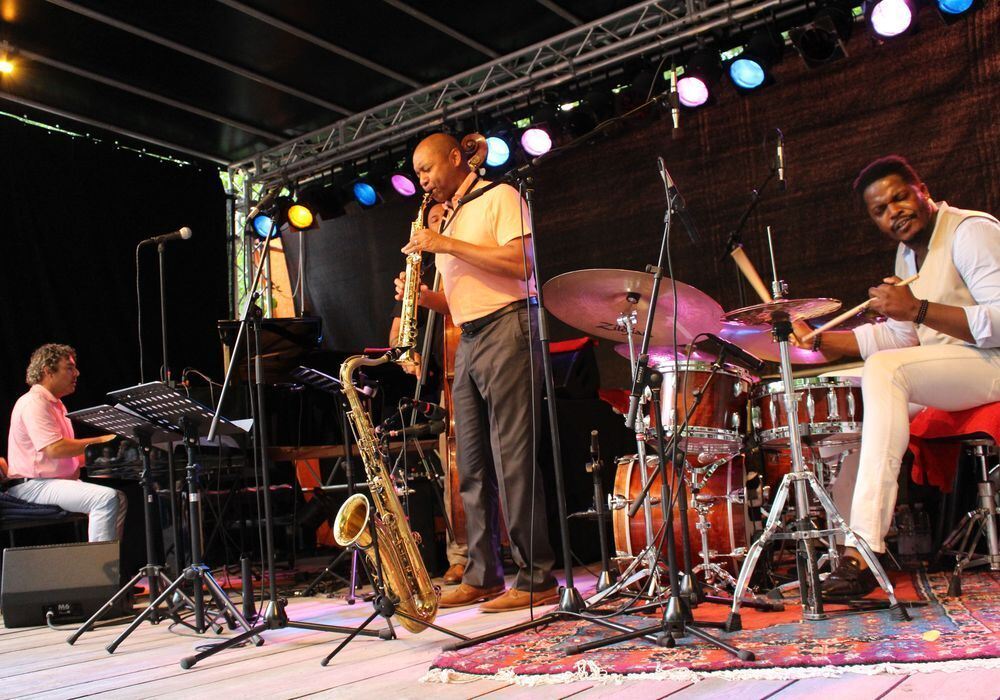 Branford Marsalis (Mitte) und Mitglieder seines Quartetts auf der Sudhaus-Waldbühne. FOTO: JÜSP