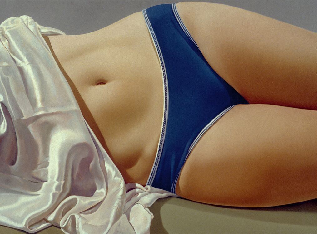 John Kacere (1920-1999) hat die Hüftregion der Frau in dreifacher Lebensgröße zu seinem Markenzeichen gemacht. Sein malerisches Interesse galt ausschließlich der Wiedergabe von Stoff und Haut. Das Ölgemälde »Serina« entstand 1972. FOTO: KUNSTHALLE/C: LOUIS K. MEISEL