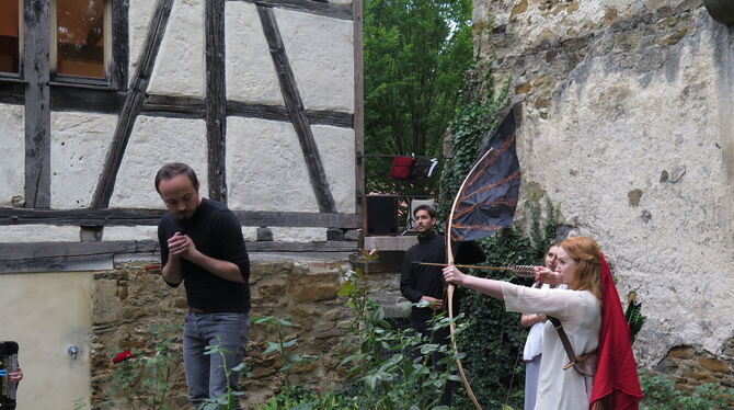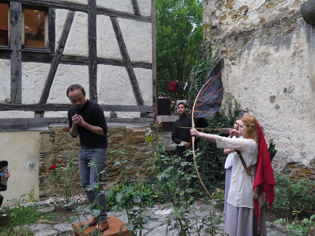 Alvaro Tinjaca-Bedoya (links) verkörpert hier die menschliche Zerbrechlichkeit, Ulrike Härter den Schützen Amor. FOTO: STRÖHLE