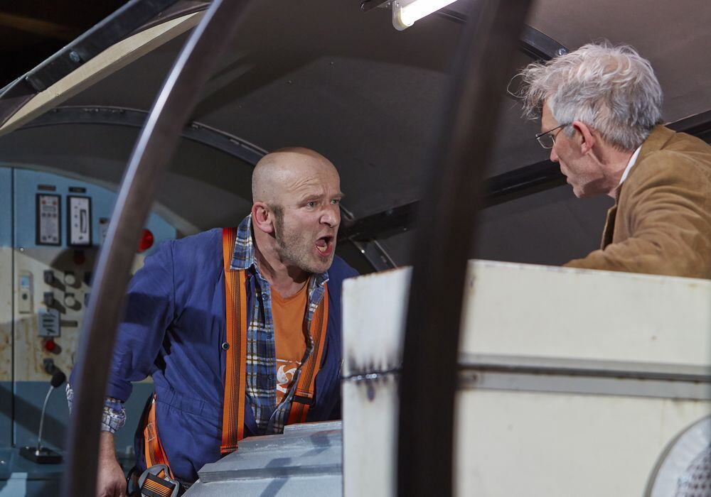Die Emotionen kochen hoch bei den Monteuren Gruber (Berthold Biesinger, links) und Stöckle (Franz Xaver Ott). FOTO: RICHARD BECKER