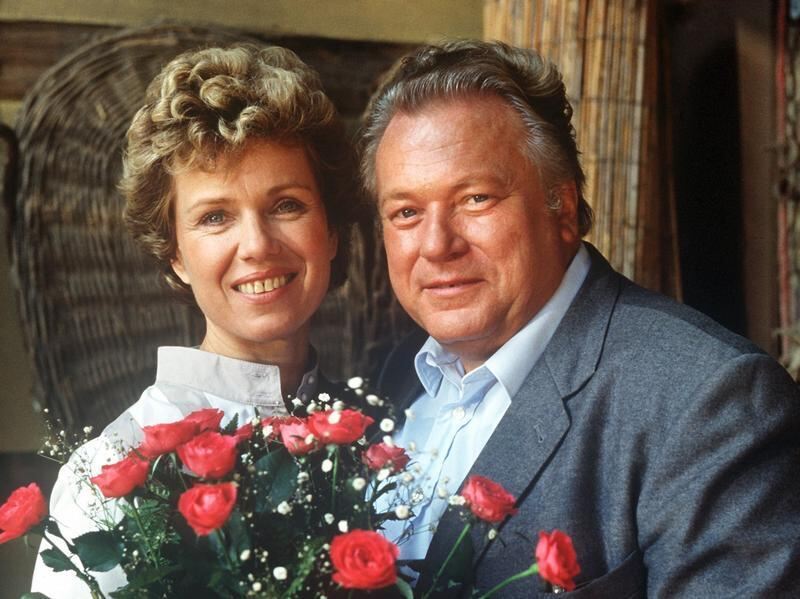 Witta Pohl und ihr Kollege Günther Strack (gestorben im Januar 1999) bei Dreharbeiten zu »Diese Drombuschs« (Archivbild von 1985).