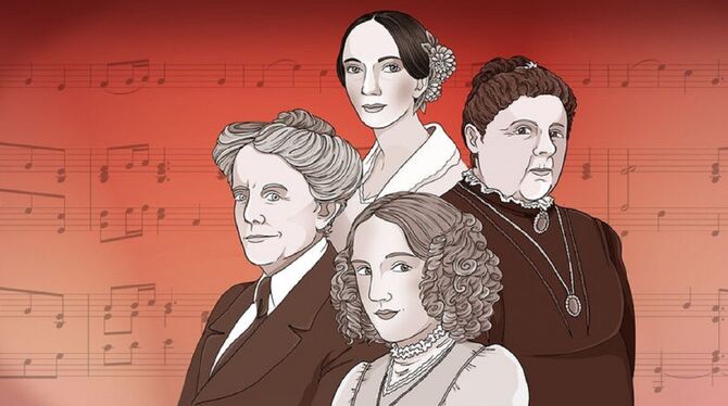 Ihr Werk gilt es dringend wiederzuentdecken: Von links im Uhrzeigersinn die Komponistinnen Ethel Smyth (1858–1944), Emilie Mayer (1812–1883), Luise Adolpha Le Beau (1850–1927) und Josephine Lang (1815–1880). GRAFIK: SWEN MARCEL