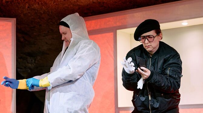 Seltsame Tätigkeit mit seltsamen Begegnungen: David Liske (links) und Chrysi Taoussanis in »Der Tatortreiniger«.