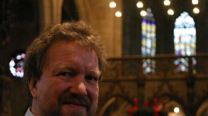 Bredenbach an seiner künftigen Hauptwirkungsstätte, der Stiftskirche. GEA-FOTO: KNAUER