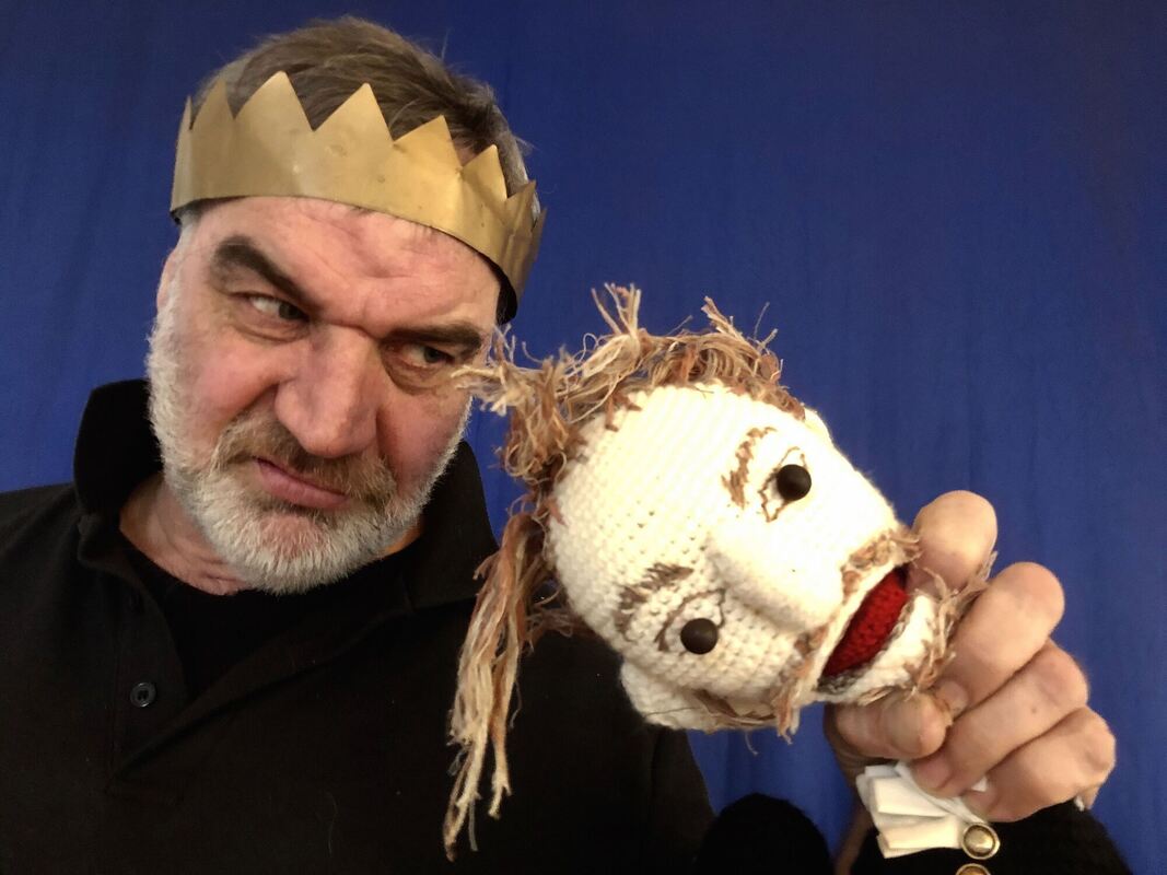 Michael Miensopust mit einer Shakespeare-Puppe bei Proben zu seinem Stück »Richard III – great again«. FOTO: SCHULTZE