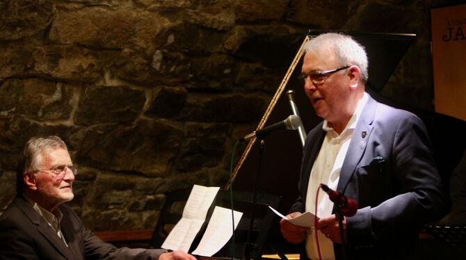Oberbürgermeister Thomas Keck (rechts) bedankte sich bei Reutlingens »Mr. Jazz« Clemens Wittel.