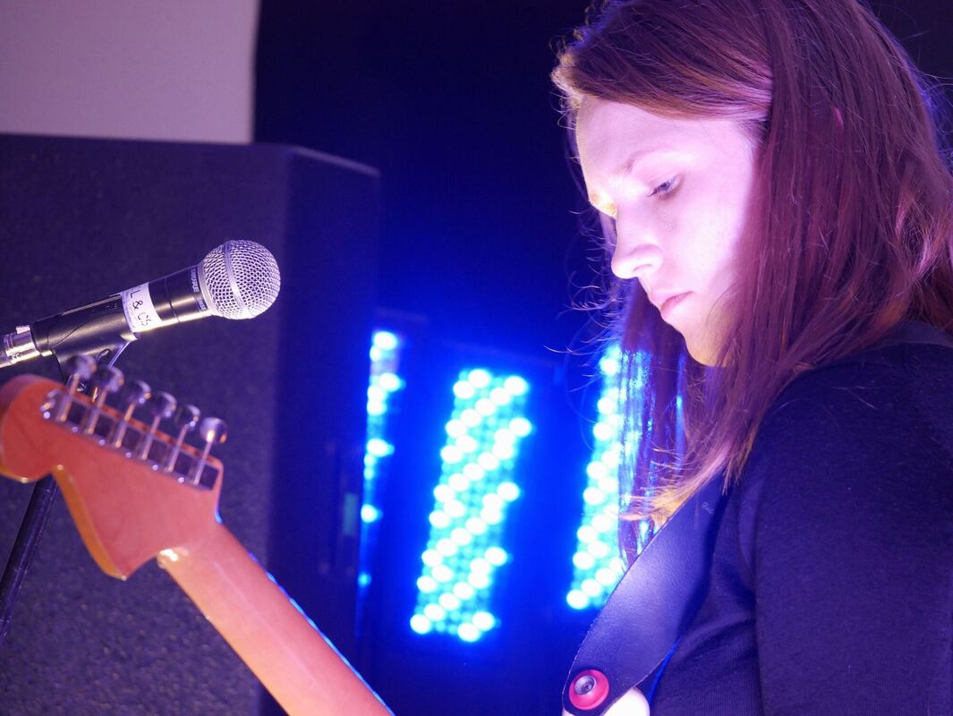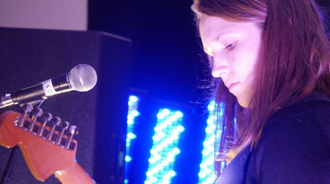 Stella Sommer feiert Erfolge mit ihrer Band Die Heiterkeit. In Reutlingen begleitete sie sich selbst auf der Gitarre. FOTO: MORAWITZKY
