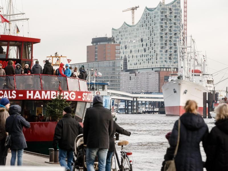 Die Elbphilharmonie von den Landungsbrücken aus gesehen. Foto: Markus Scholz