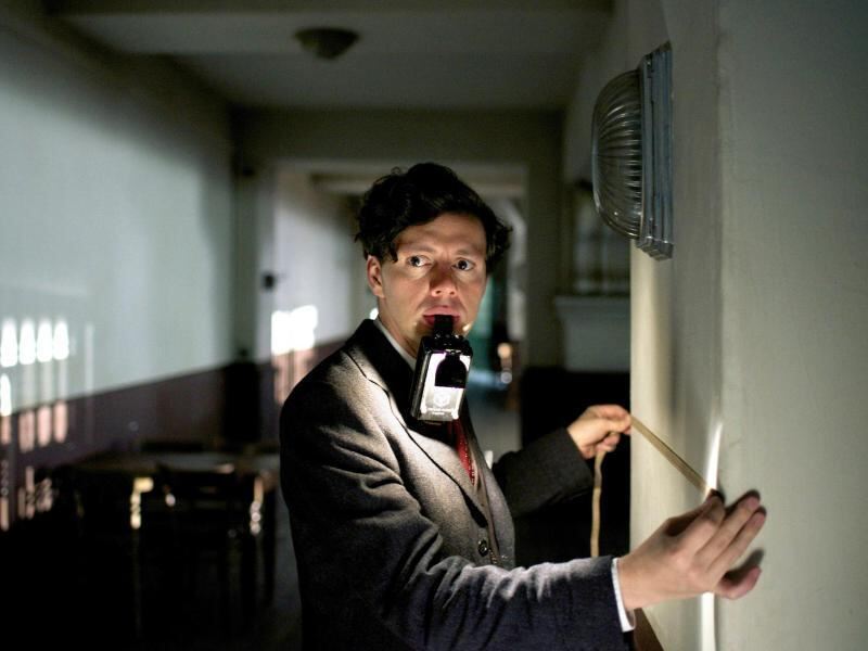 Georg Elser (Christian Friedel) misst im Bürgerbräukeller das Versteck für seine Bombe aus. Foto: Bernd Schuller/Lucky Bird Pictures