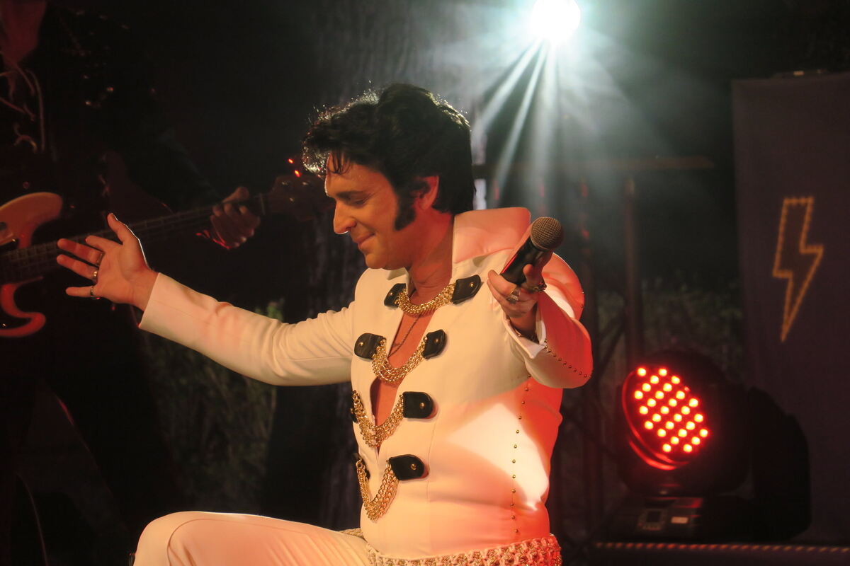 Elvis verteilt Schweißtücher im Reutlinger Naturtheater