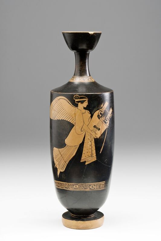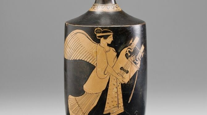 Ölfläschchen mit der Siegesgöttin Nike mit Saiten-instrument, Attika, vermutlich Athen, um 470 v. Chr