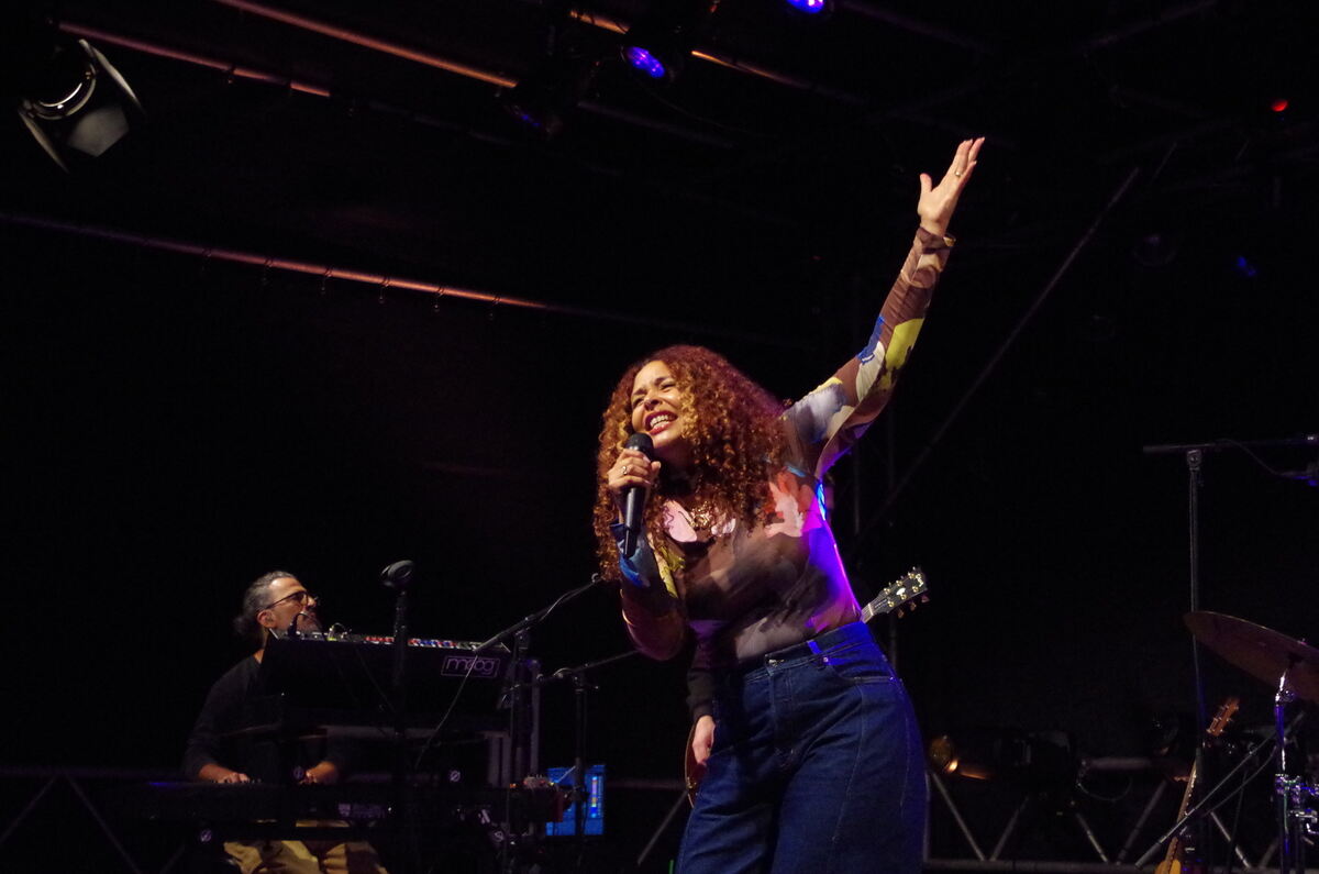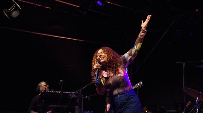 Soulsängerin Joy Denalane bei ihrem Auftritt auf der Open-Air-Bühne des Tübinger Sudhauses.