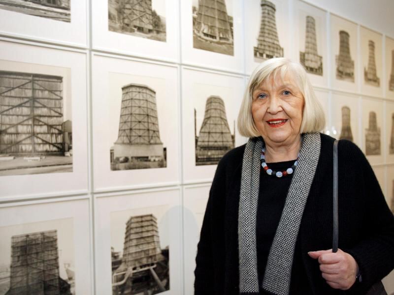 Hilla Becher 2008 im Musee d'Art Moderne de la Ville in Paris vor ihrer Fotoserie »Kühltürme«. Foto: David Ebener