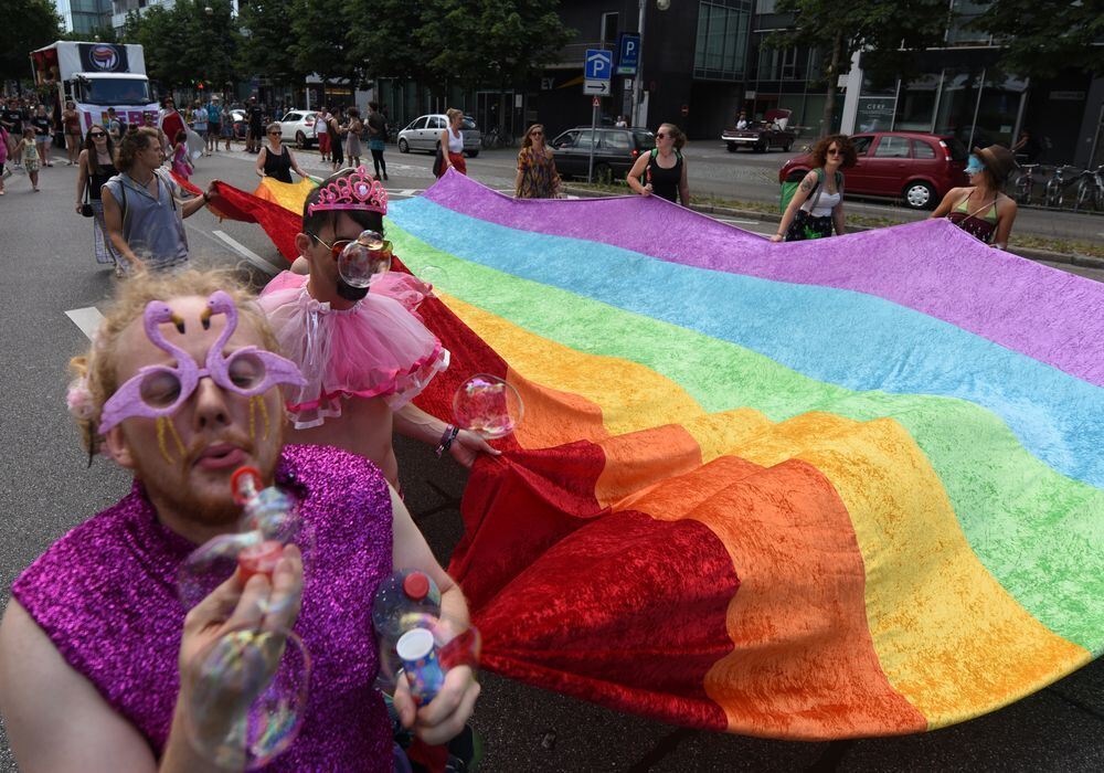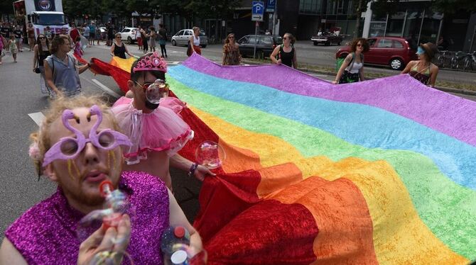 Teilnehmer der Parade des Christopher Street Day (CSD) in Freiburg. Foto: Patrick Seeger/dpa