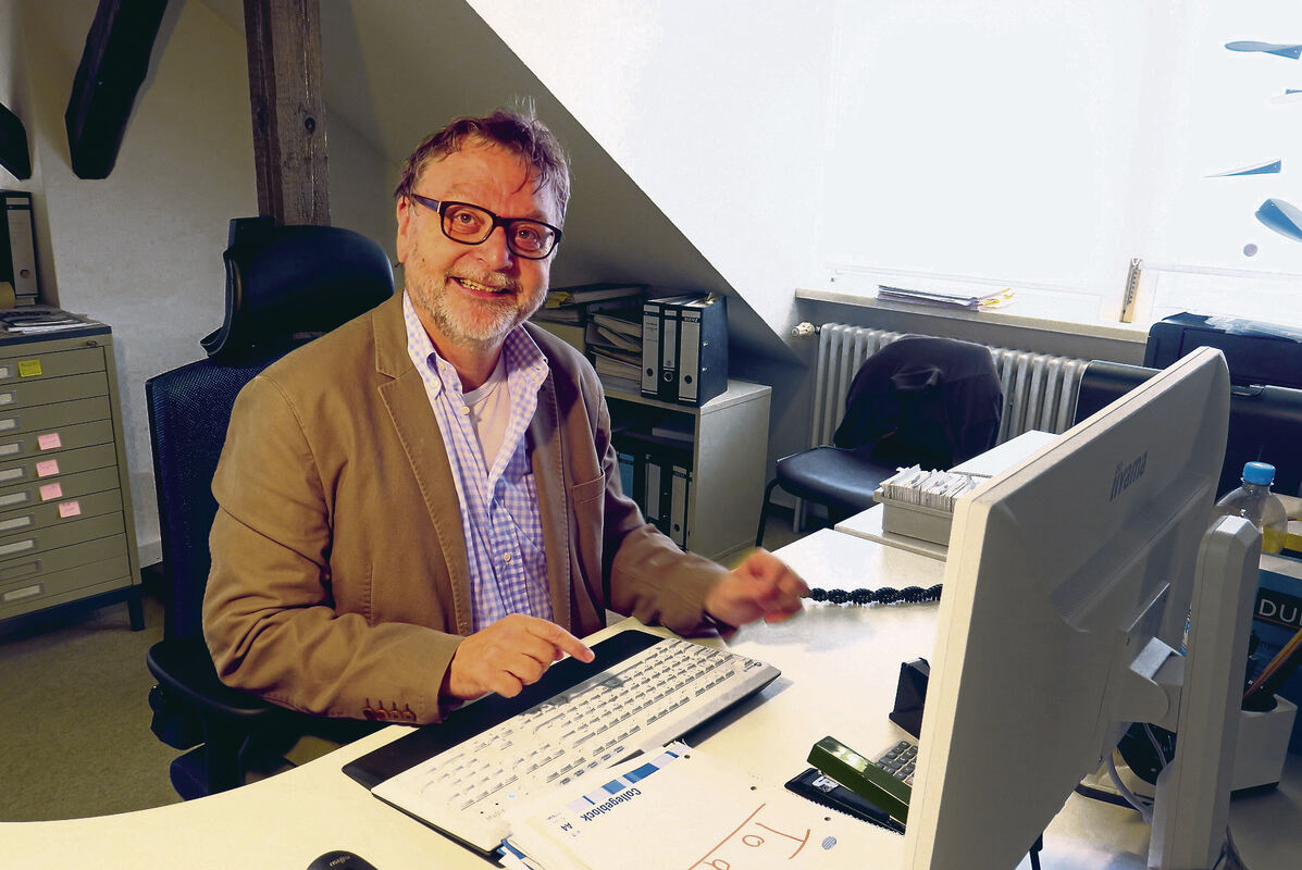 Herbert Eichhorn an einem seiner letzten Arbeitstage in seinem Büro mit, wie man nun weiß, zu niedriger Deckenhöhe. Foto: Knauer