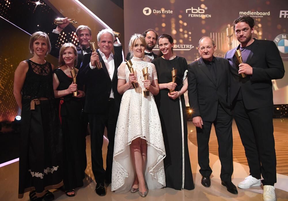 Das Filmteam von »Der Staat gegen Fritz Bauer« steht in Berlin bei der Verleihung des Deutschen Filmpreises, der Lola, auf der Bühne.