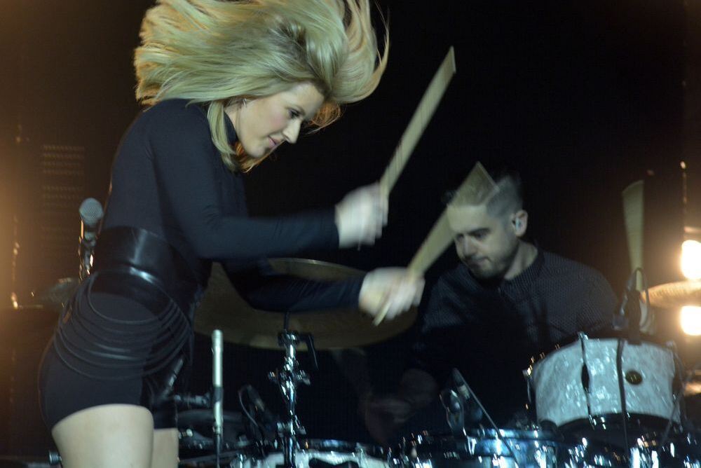 Eine Lady in Black: Ellie Goulding als Trommlerin in der Porsche-Arena.