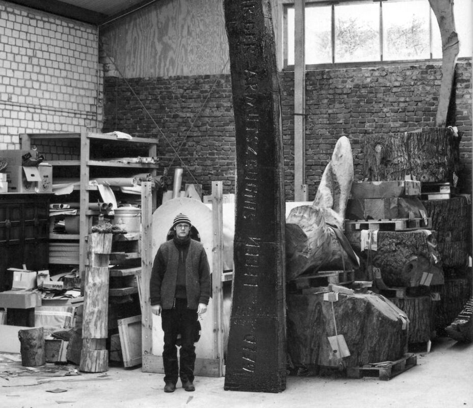 Felix Droese in seinem Atelier neben seiner »Hölderlin-Säule«. FOTO: SPENDHAUS