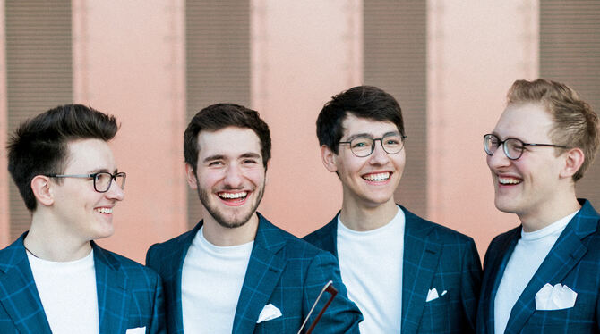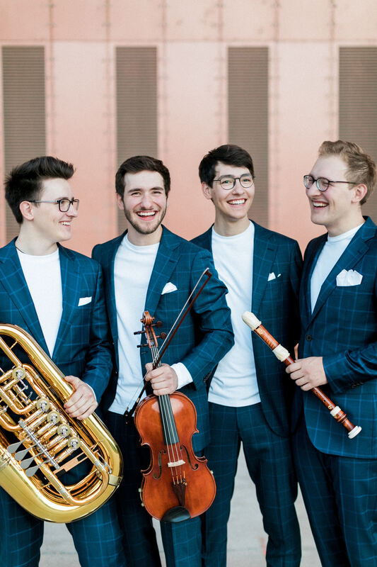 Bunter Instrumentenmix: Die Hanke-Brüder Fabian (Tuba), Lukas (Bratsche), Jonathan (Klavier) und David Hanke (Blockflöte) auf einem Pressebild (von links). FOTO: PEWAL