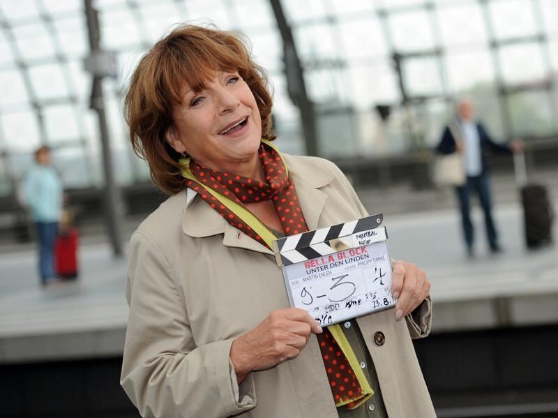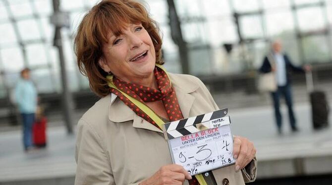 Hannelore Hoger als Bella Block am Rande von Dreharbeiten am Hauptbahnhof in Berlin. Foto: Britta Pedersen