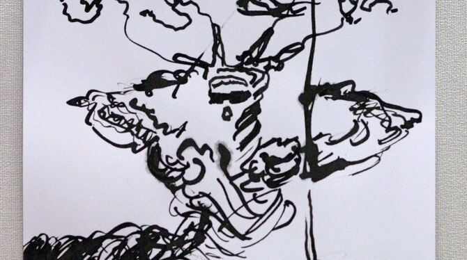 Zeichnung von Daniela Waitzmann in ihrer Ausstellung in der Kreissparkasse Pliezhausen.