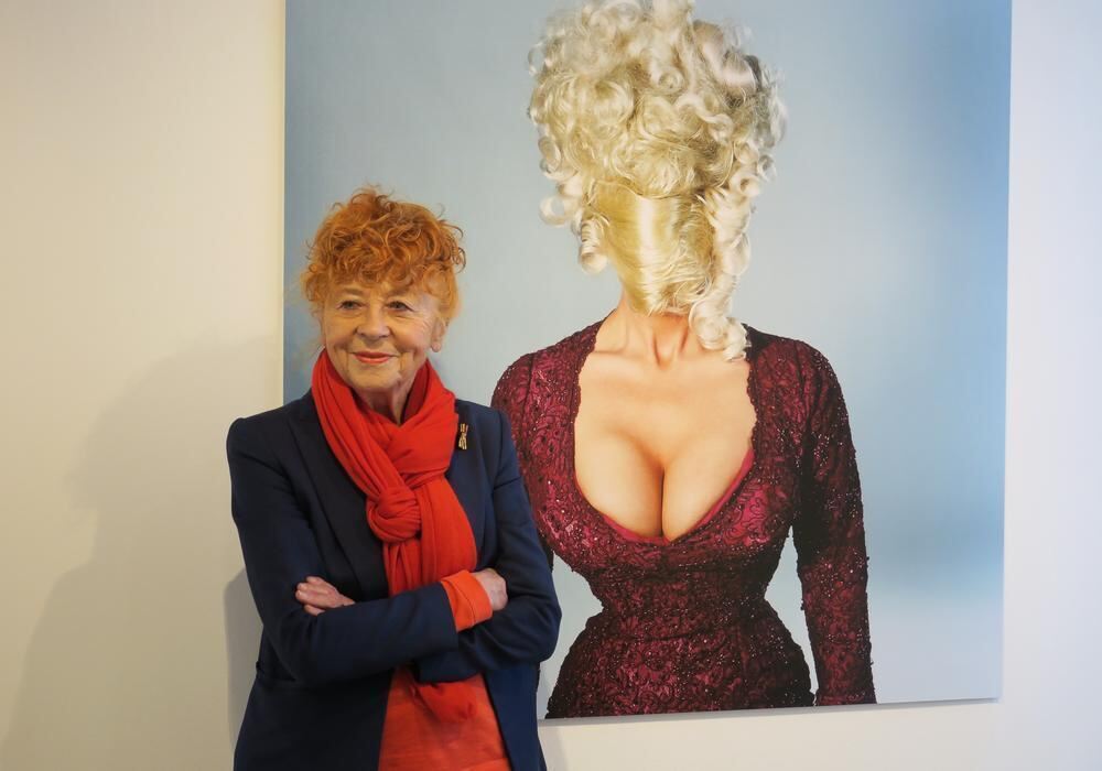 Herline Koelbl vor einer hintergründig-irritierenden Aufnahme aus ihrer Serie Haare. FOTO: KNAUER
