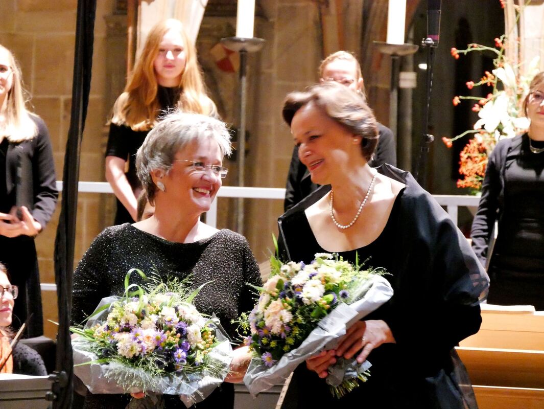 Sibylla Rubens (links) und Ingeborg Danz meisterten gemeinsam mit der Camerata Vocalis und der Capella Aureliensis die Solo-Kantaten Johann Sebastian Bachs am dritten Abendkonzert des Bachfestes 2018 in der Tübinger Stiftskirche. FOTO: WURSTER