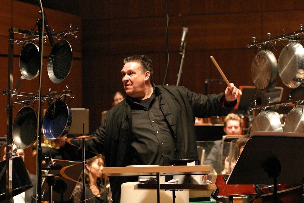 Schlagzeuger Peter Sadlo bei der Uraufführung von Ferran Cruixents Konzert beim Neujahrskonzert der Württembergischen Philharmonie in der Stadthalle.