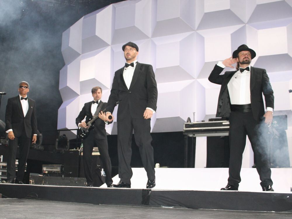 Die Söhne Mannheims bei ihrem Auftritt in der Porsche Arena: (von links) Xavier Naidoo, Gitarrist Kosho, Tino Oac und Henning Wehland.