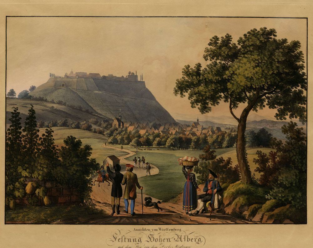 Nur von außen idyllisch: der Hohenasperg auf einem historischen Aquarell.