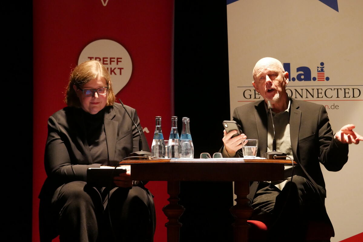 Williams wurde bekannt durch die Romane der »Otherland«-Saga, die in virtuellen Science-Fiction-Welten spielt, und Romane, die er in einem fiktiven Kontinent namens Osten Ard ansiedelte. Er ist ein uferloser Erzähler, einer, der unzählige Handlungsstränge aufbaut und verknüpft. Seine Bücher zählen oft bis zu tausend Seiten, und er hat viele Bücher geschrieben. In Tübingen liest er zuerst einen kurzen Abschnitt seines aktuellen Buches »Die Kinder des Seefahrers«, erschienen zwei Tage zuvor in zwei Bänden – dann beantwortet er Fragen.