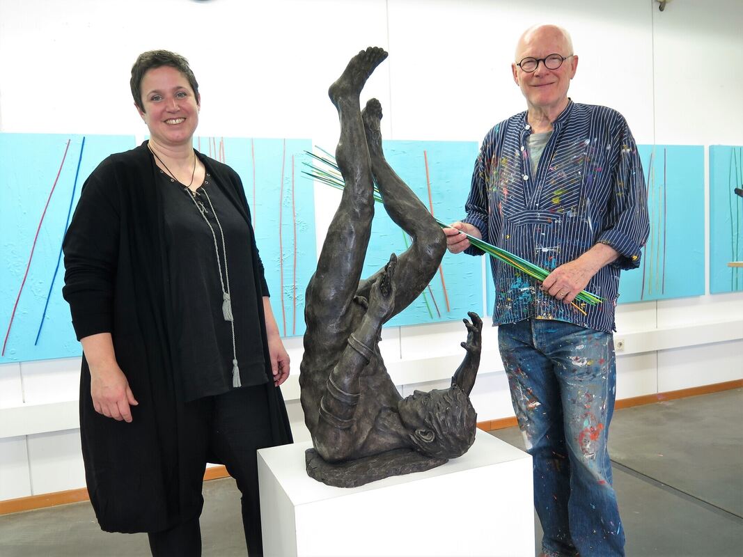 Alexandra Kapogianni-Beth zeigt ihre Skulptur »Stürzender Ikarus«, Friedhelm Wolfrat den Bilderzyklus »Schlei«. FOTO: STRÖHLE