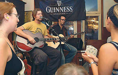 Blick durch eine Lücke im Gedränge auf Reamonn Garvey (mit Gitarre). Und der Schweiß läuft in Strömen.
