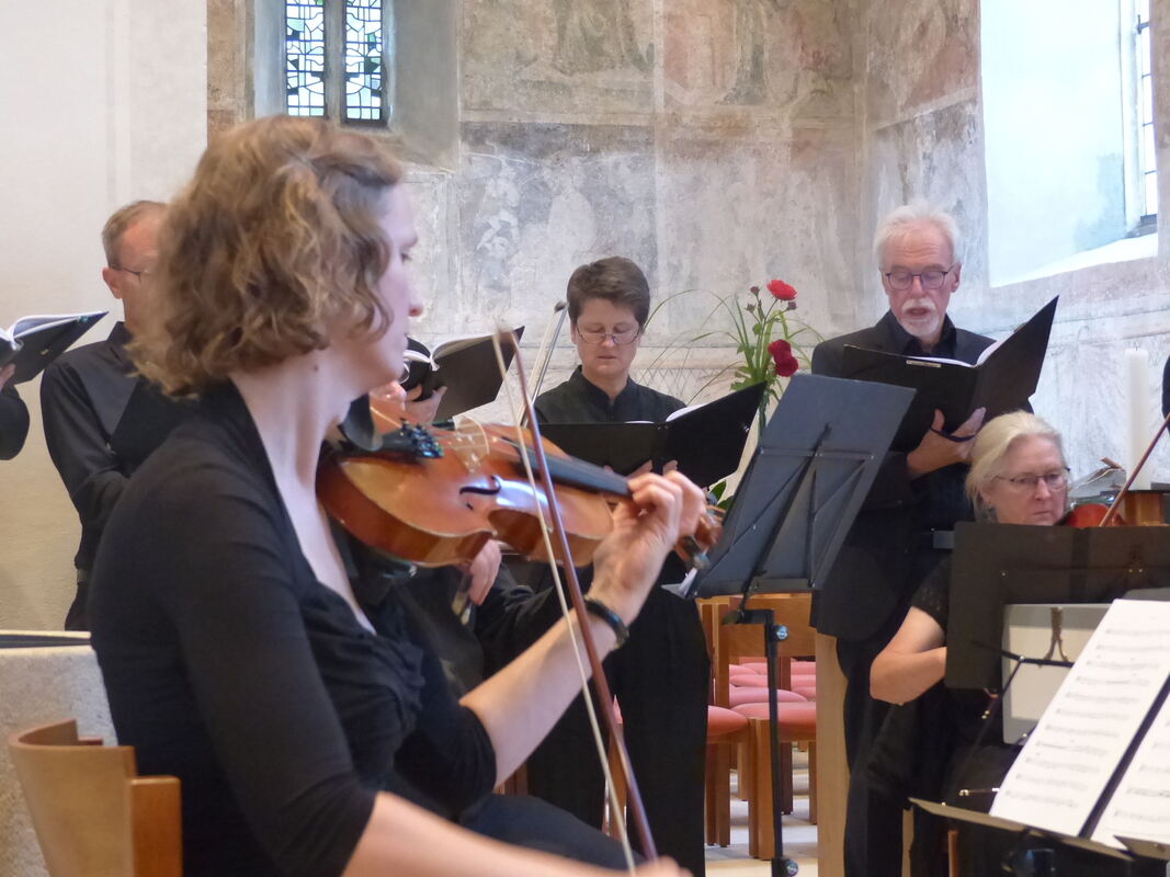 Musizierende des Thomas Selle Ensembles in der Johanneskirche Unterhausen.