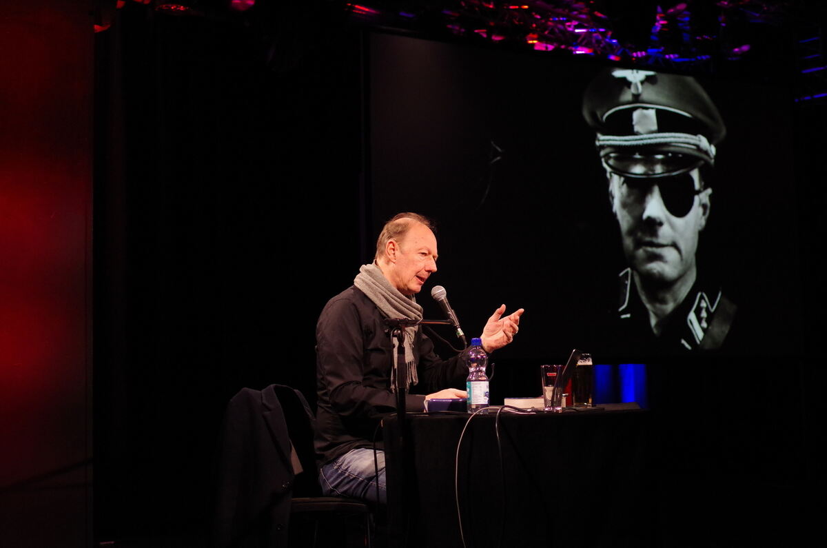 Satiriker Martin Sonneborn tritt im franz.k auf und zeigt sich selbst als Stauffenberg auf dem Weg zu Björn Höcke.