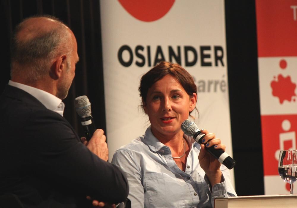 Juli Zeh im Gespräch mit Moderator Wolfgang Niess. GEA-FOTO: STRÖHLE