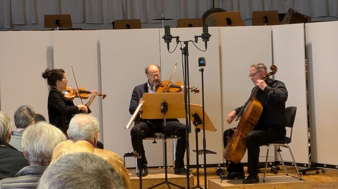 Sena Umul, David Inbal und Stephan Meyer (von links nach rechts) spielten eindrucksvoll Werke von Sibelius und Mozart.