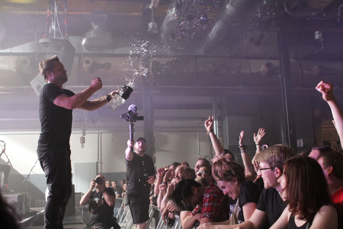 Nah dran an den Fans: Sänger Christoph von Freydorf ist das, was man eine klassische »Rampensau« nennt. Im Wizemann gab’s eine Dusche für die erste Reihe. FOTO: SCHRADE