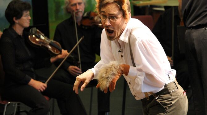 Erzähler Peter Zisch spielt überzeugend die Katze. FOTO: SORBISCHES NATIONAL-ENSEMBLE