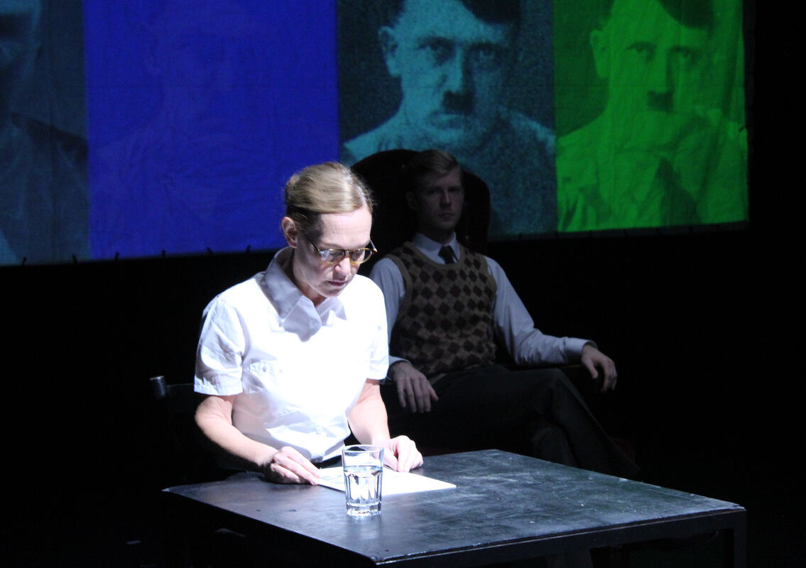 Sabine Weithöner und Justin Hibbeler bei der szenischen Lesung auf der Werkstattbühne des LTT.