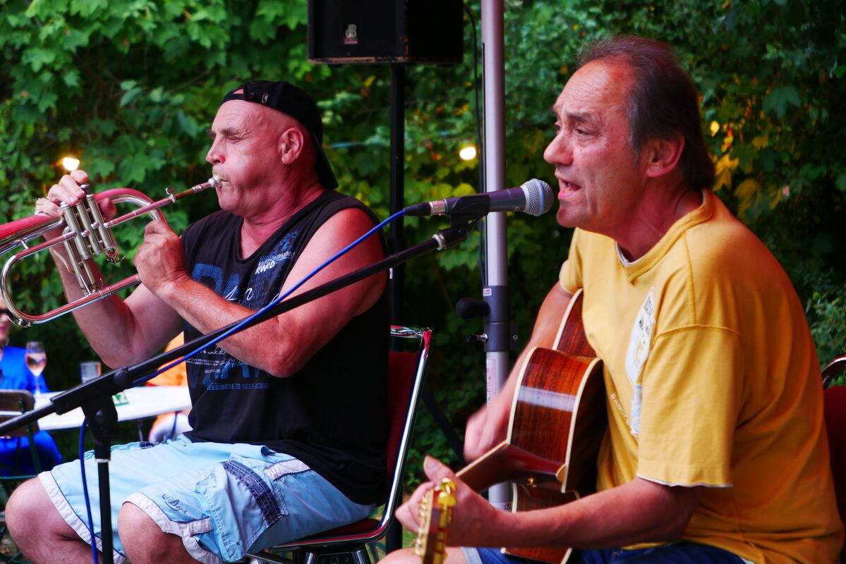 Werner Dannemann (rechts) im Pappelgarten, hier begleitet am Flügelhorn von Harry von Schild.