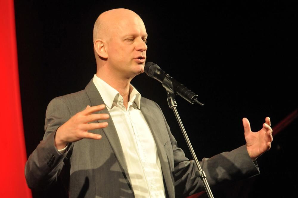Ein geduldiger Geschichtenerzähler mit speziellem Sinn fürs Makabre: Rüdiger Hoffmann in der Listhalle.