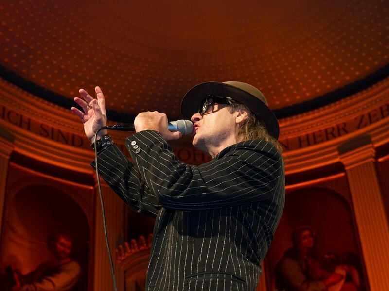 Panikrocker Udo Lindenberg singt in der Schinkel-Kirche in Neuhardenberg.