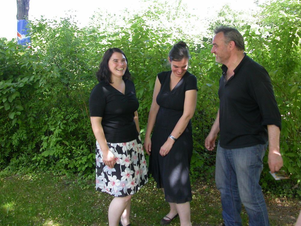 KJT-Dramaturgin Susanne Schmitt (links), LTT-Intendantin Sterr und KJT-Leiter Michael Miensopust in der Pomologie.