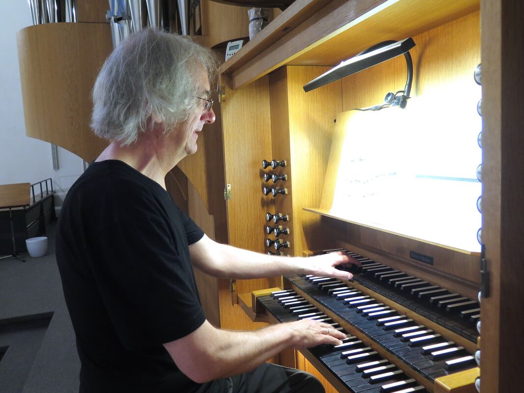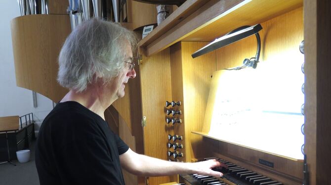 Martin Neu an der Orgel der St.-Peter-und-Paul-Kirche im Storlach.