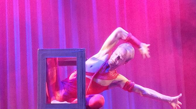 Akrobat Santos trat in Metzingen als Limbo-Tänzer auf und erwies sich als bewundernswert gelenkig, als er in einen winzigen Glaskasten kletterte.