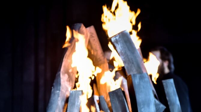 Der Pfarrer (Benedikt Geisenhof) vor dem Pestfeuer. FOTO: ARNO DECLAIR