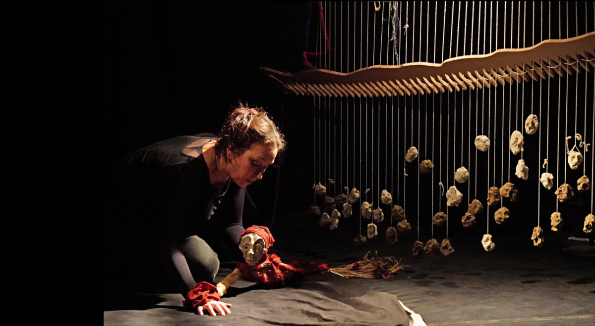 Janne Wagler in einer Szene des Figurentheaterstücks »Arachne. Wahr sagen«, mit dem das Theater Gobelin auf der Probebühne in der Tübinger Schlachthausstraße Premiere feierte.